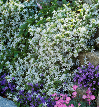 Pôdopokryvná trvalka s množstvom bielych kvetov vhodná aj k okoliu jazierok.