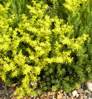 Nenáročný pôdopokryvný rozchodník so žiarivožltými hviezdicovitými kvetmi.