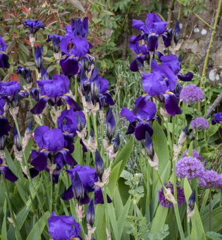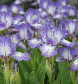 NOVINKA! Zaujímavý kosatec s fialovými kvetmi a panašovanými listami.