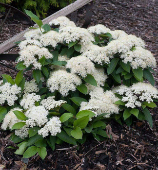 Nenáročný, pomaly rastúci ker so stredne veľkými snehobielymi kvetmi.