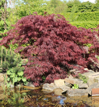 Pomaly rastúci javor s intenzívne červeným jarným sfarbením.