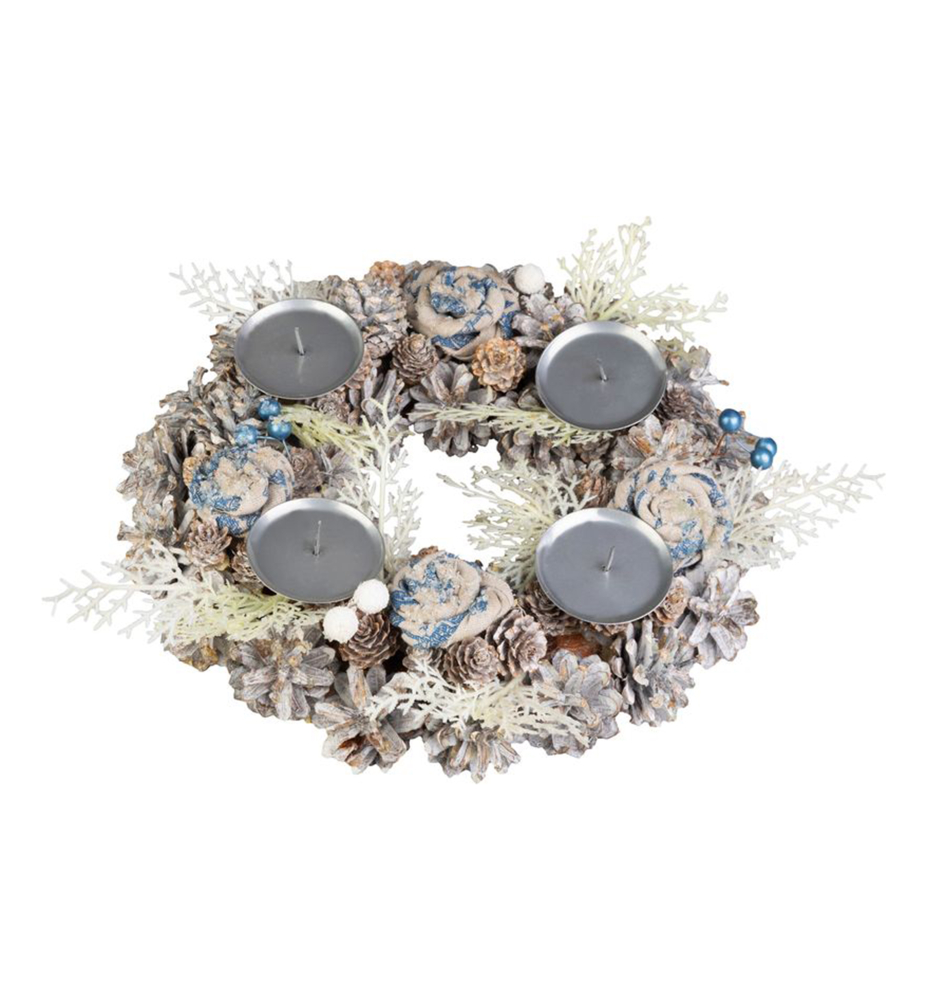 Je vybavený štyrmi držiakmi na adventné sviečky, vďaka ktorým si môžete počas adventu vychutnať krásnu atmosféru plnú pohody a očakávania Vianoc. Priemer venca je 30 cm.