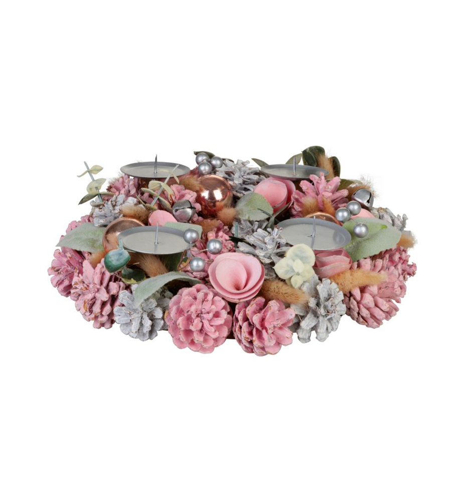 Charakteristika:Adventný veniec je nádhernou dekoráciou a neodmysliteľnou súčasťou Vianoc. Tento veniecv nežnom ružovom odtieni pridáva do vášho domova krásny a jemný vianočný nádych. Veniec je ideálny na zavesenie na dvere, stenu alebo ako súčasť vianočného aranžmánu. Obsahuje 4 bodce na adventné sviečky. Priemer venca je 30 cm.