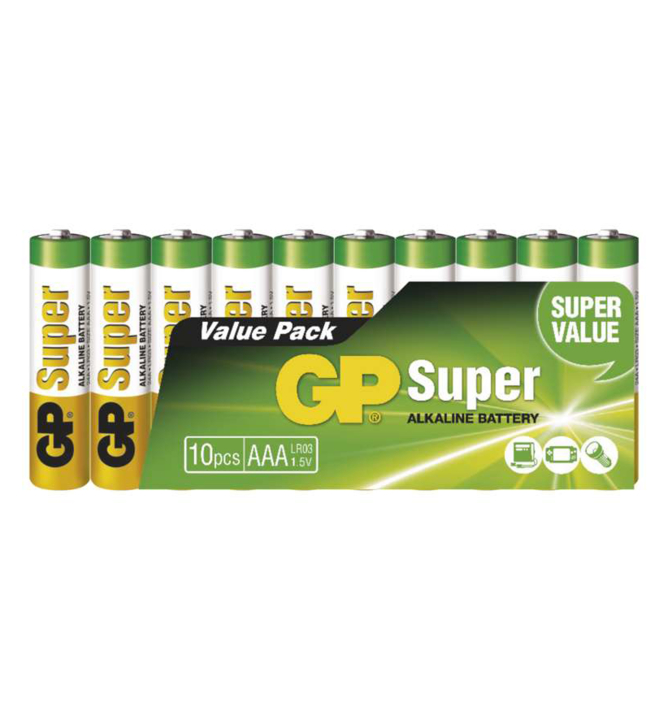 - Alkalická batéria GP Super, LR03 (AAA) 10 ks v balení