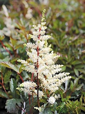 Charakteristika: Astilba ´HAPPY SPIRIT´ patrí medzi novinky medzi astilbami. V polovici leta vytvára husté biele našuchorené súkvetia v podobe metlín, ktoré rastú na tmavočervených vzpriamených stonkách. Nerozkvitnuté kvety majú sviežu zelenú farbu. Listy majú tmavú zelenú až bronzovú farbu, vďaka čomu sa dobre kombinujú s inými dekoratívnymi trvalkami. Najlepšie vynikne po výsadbe viacerých kusov rastlín vedľa seba.