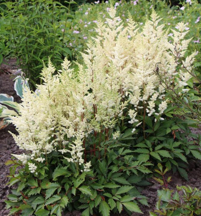 Charakteristika: Astilba ´MIGHTY®PLONIE´ je vysoký kultivar, ktorého kvety pripomínajú vzdušné oblaky vznášajúce sa nad zelenými listami. Krémovobiele kvety rastú na ozdobných pevných stonkách výraznej červenej farby. Tento kutivar rastie do výšky až 120 cm, vynikne v kombinácii s inými tieňomilnými trvalkami alebo v skupinovej výsadbe. Kvety sú vhodné k rezu.