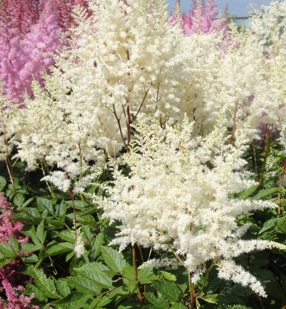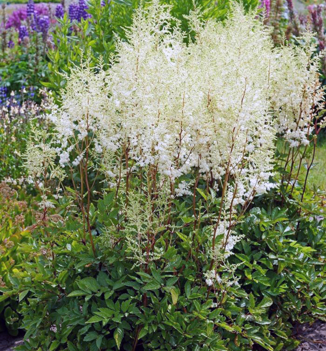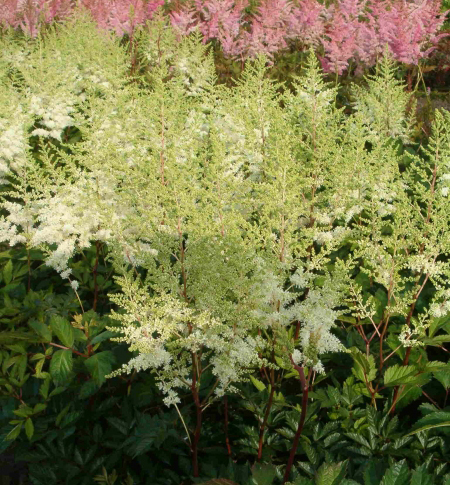 Mimoriadne vysoká, gigantická astilba so vzdušnými bielymi kvetmi.