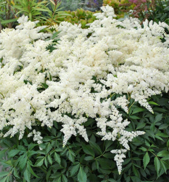 Charakteristika: Astilba ´FIREWORKS WHITE®´ kvitne v letných mesiacoch hustými bielymi metlinami, ktoré kontrastujú s tmavozelenými až bronzovozelenými členitými listami. Táto odroda dorastá do výšky 60-70 cm a je výbornou rastlinou na oživenie tienistého záhona. Astilba sa často vysádza aj do podrastu, kde zabraňuje rastu buriny, je možné ju pestovať aj v črepníkoch. Kvety sú vhodné k rezu.