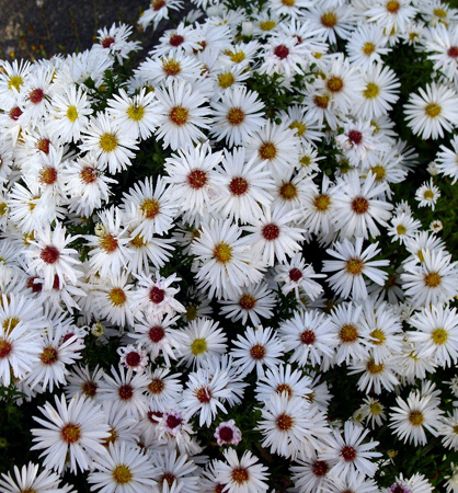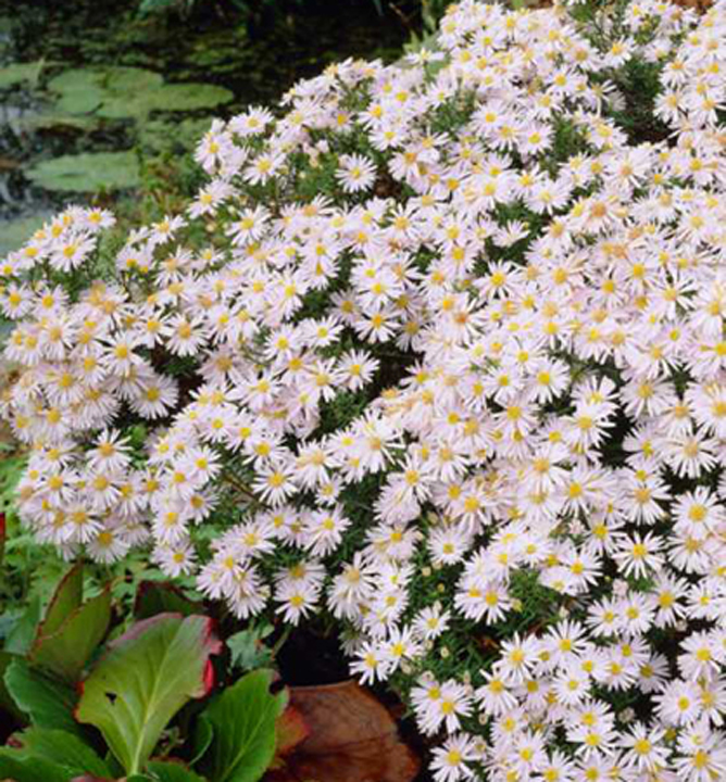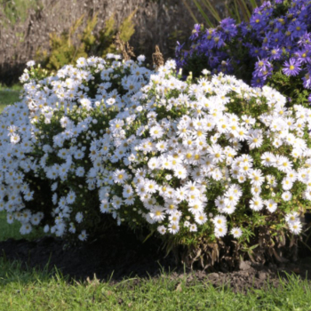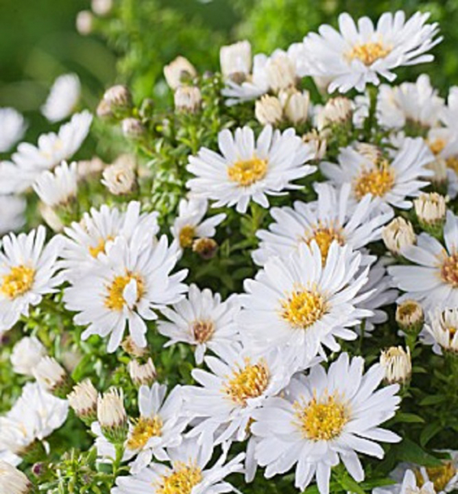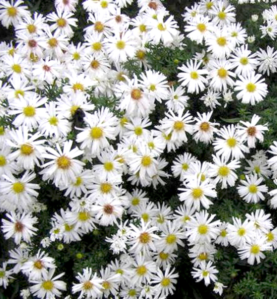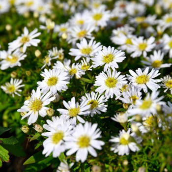 Nízka astra „Snehové Bozky“ - bohato kvitnúca jesenná astra s bielymi kvetmi.