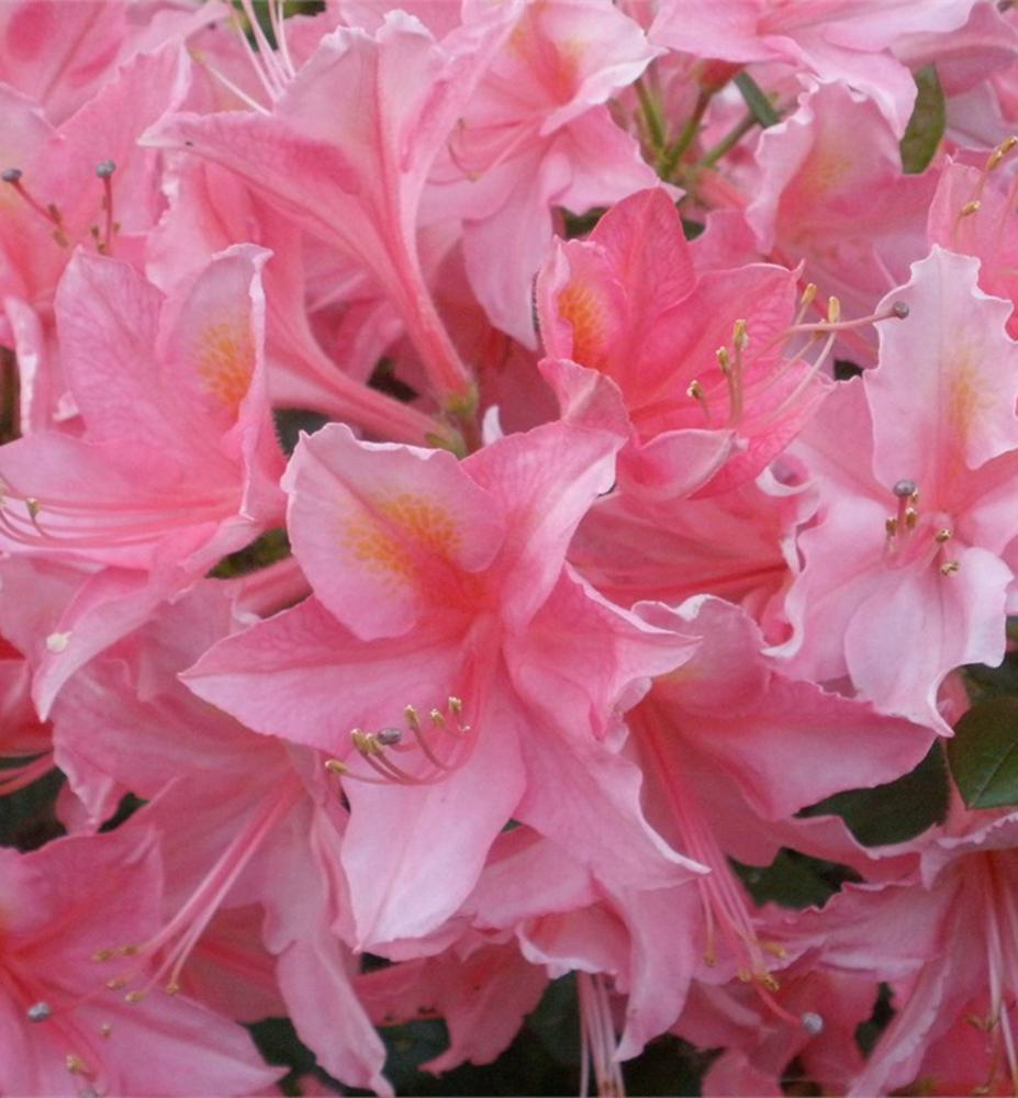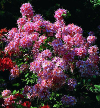 Charakteristika: Knap Hill azalka ´JOLIE MADAME´ vytvára vyšší ker, ktorý je na jar obsypaný obrovským množstvom žiarivých ružových kvetov s oranžovou kresbou. Aromatické kvety sú veľké a majú priemer 5-7 cm. Opadavé listy sú na rozdiel od klasických rododendronov a azaliek podlhovasté, matné a s jemnými chĺpkami. Rastliny sú plne mrazuodolné.