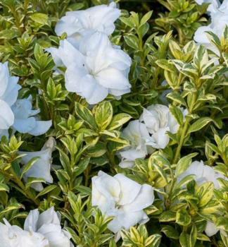 Kompaktná azalka s veľkými hviezdicovitými kvetmi snehovobielej farby.