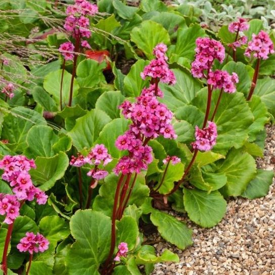 Obľúbená bergénia s atraktívnymi červenými stonkami a sýto ružovými kvetmi.