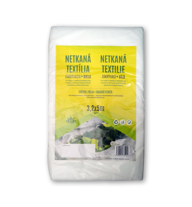 Charakteristika: Biela netkaná textília slúži ako ochrana rastlín pri nepriaznivom počasí, je priepustná pre vodu, svetlo a vzduch, zamedzuje nadmernému vyparovaniu vody z pôdy, zatepľuje, chráni rastliny proti lietajúcim škodcom, chráni pred mrazmi a chladom, dažďom, vetrom a nadmerným slnkom.