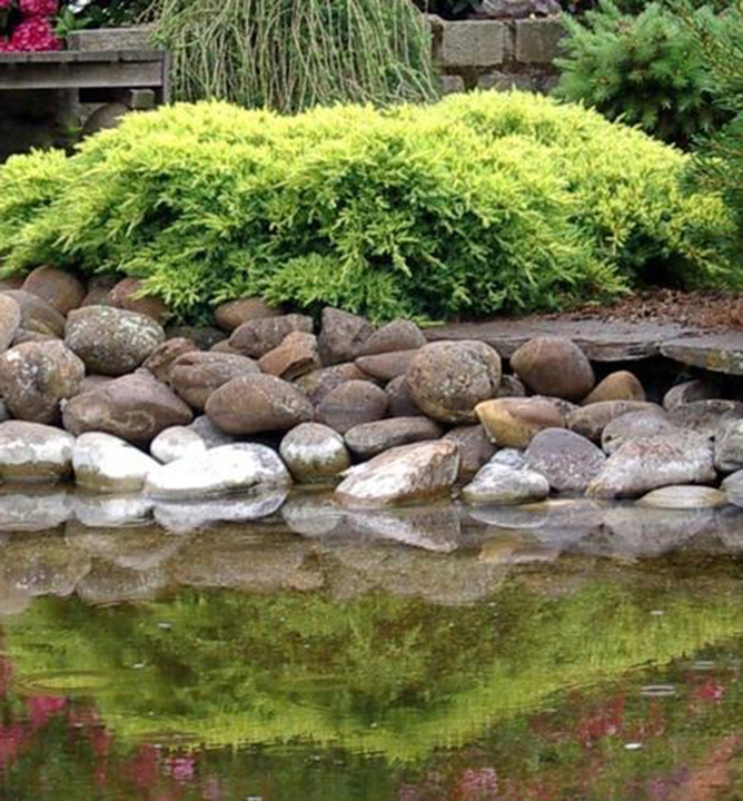 Nižšia rozložitá borievka "Zlaté pobrežie" s dvojfarebnými ihlicami.