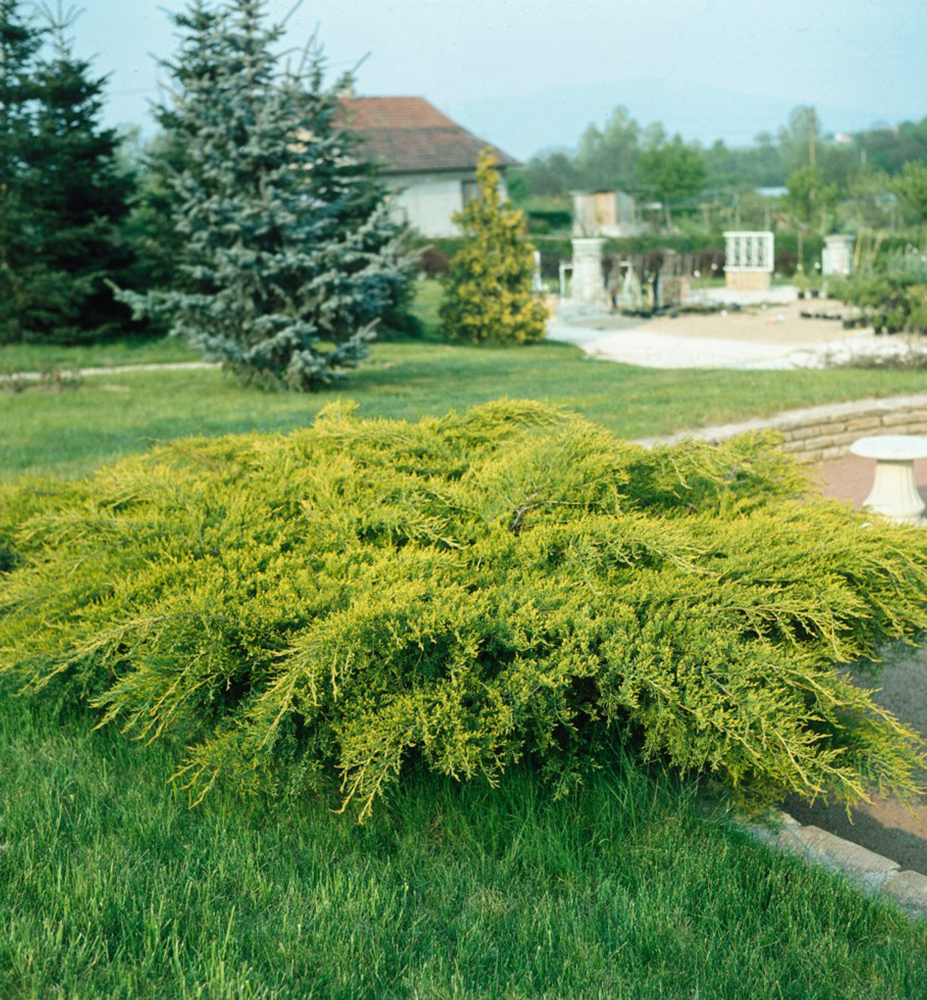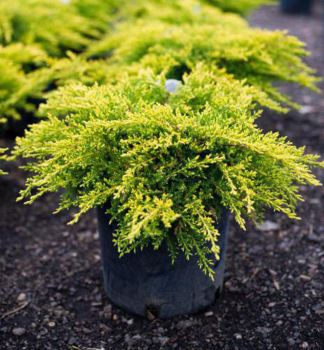 Vždyzelený pôdopokryvný ker s množstvom žiarivo žltých kvetov.