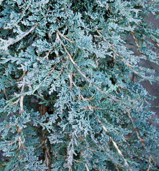 Nižšia rozložitá borievka "Zlaté pobrežie" s dvojfarebnými ihlicami.