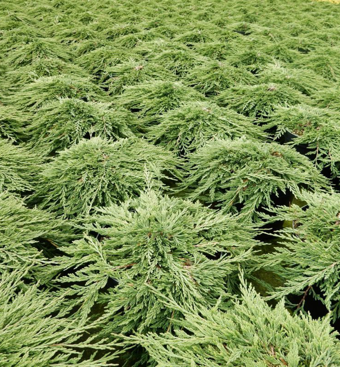 Pomaly rastúca nízka borievka zelenej farby, tvoriaca hustý koberec.