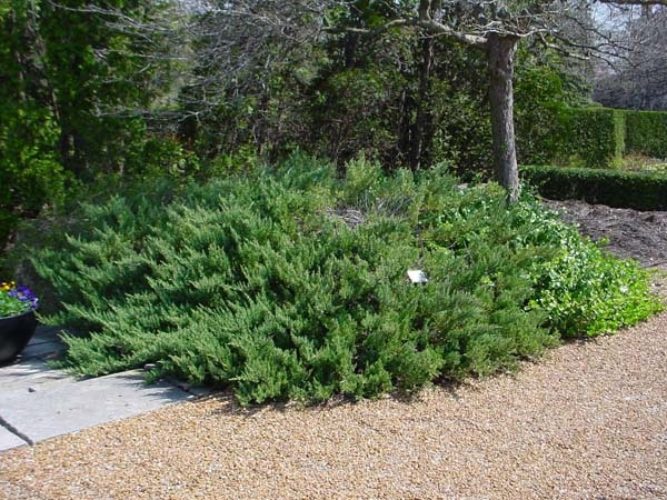 Výborný pôdopokryvný vždyzelený skalník s bielymi kvetmi a červenými bobuľami.