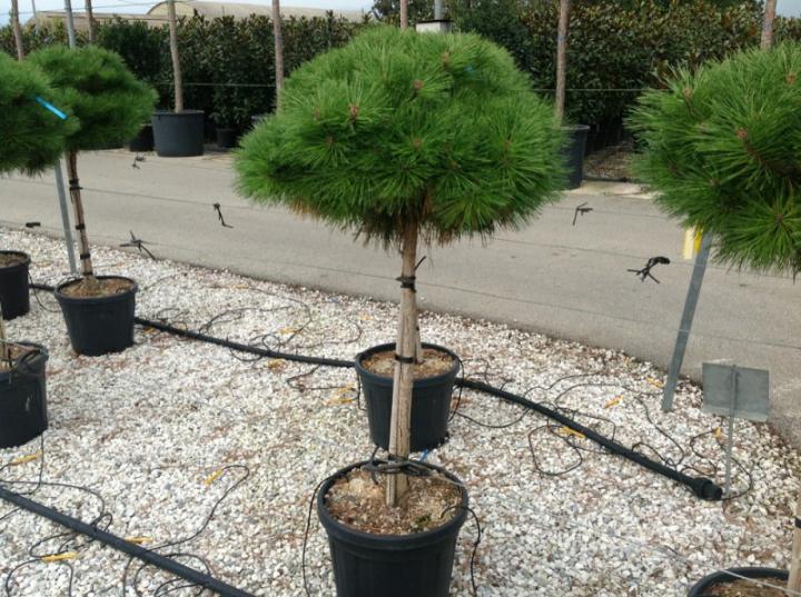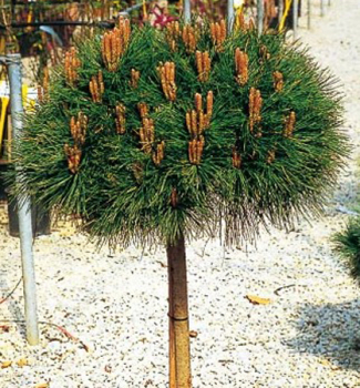 Elegantná pomaly rastúca odroda borovice pyramídového vzrastu.