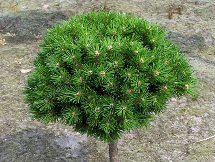 Okrasný strom s pravidelnou guľovitou korunou a zaujímavou kôrou.