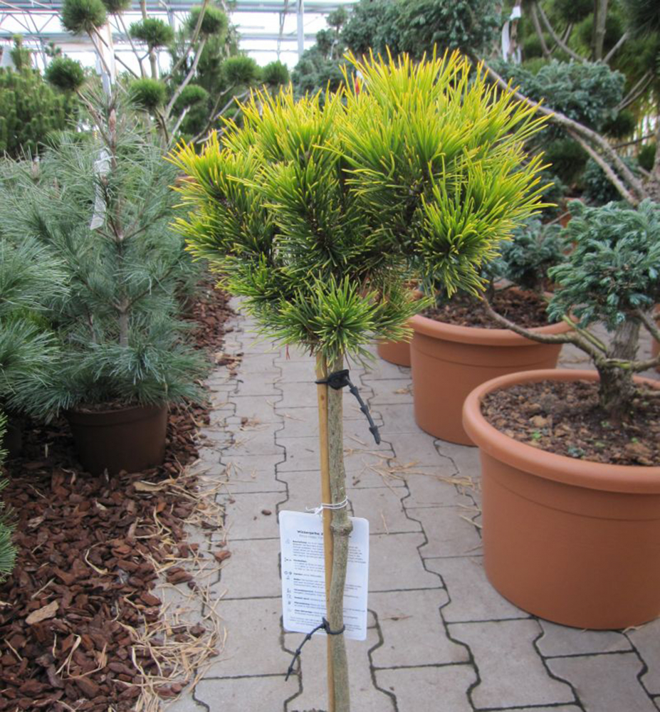 - Borovica horská ´CARSTEN´S WINTERGOLD´ na kmienku 60 cm, kont. 10 l