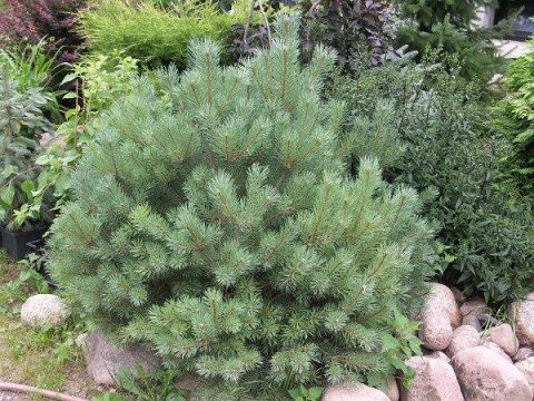 Pomaly rastúci ihličnan s mierne rozložitým vzrastom a modrozeleným ihličím.