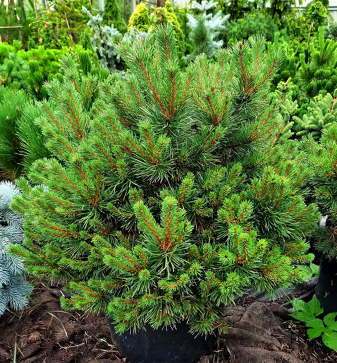 Charakteristika: Borovica lesná ´BEUVRONENSIS´ patrí medzi vyhľadávané pomaly rastúce ihličnany s rozložitým vzrastom. Ihlice sú lesklé, sfarbené do modrozelenej farby so strieborným nádychom. V dospelosti dosahuje maximálne výšku 1 m. Je vysoko mrazuvzdorná. Vysádzame ju do skupinovej výsadby ihličnanov, žltá farba ihličia vynikne vo vresovisku aj vo väčšom črepníku.