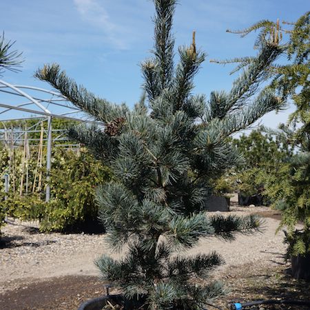 Elegantná pomaly rastúca odroda borovice pyramídového vzrastu.