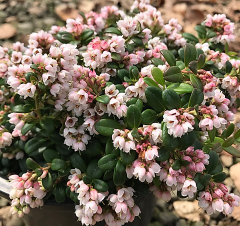 Charakteristika: Brusnica obyčajná pôvodom z Ázie je zakrslá odroda s hustým habitusom. Je to pomaly rastúci kultivar a dorastá do výšky 15 - 25 cm. Na konci jari zakvitne bieloružovými kvetmi zvončekového tvaru, ktoré na jeseň vystriedajú drobné, sýto červené jedlé plody v primere 1 cm. Tieto plody sú vynikajúce prírodné liečivo pre pacientov so zápalom močových ciest. Listy sú drobné, kožovité, tmavo zelenej farby vajcovitého tvaru. Je vhodná na výsadbu do skaliek, záhonov ale aj črepníkov.