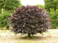Okrasný strom s pravidelnou guľovitou korunou a zaujímavou kôrou.