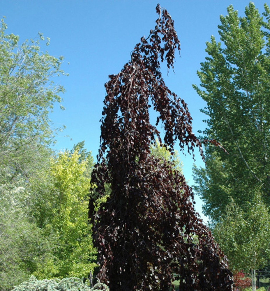 Okrasný strom s pravidelnou guľovitou korunou a zaujímavou kôrou.