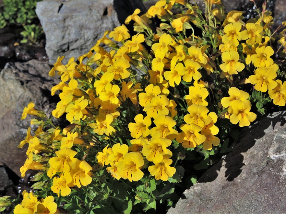 Bohato kvitnúca vodná rastlina s množstvom zlatožltých kvetov.
