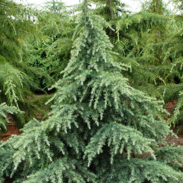Dominantný céder výraznej modrostriebornej farby a kužeľovitého tvaru.