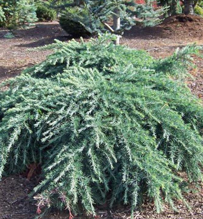 Pomaly rastúca nízka borievka zelenej farby, tvoriaca hustý koberec.