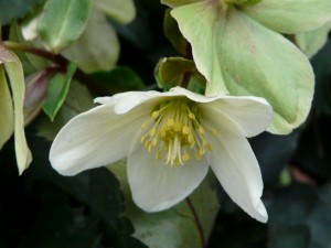 Výrazná zimná trvaka s tmavými vínovočervenými kvetmi.
