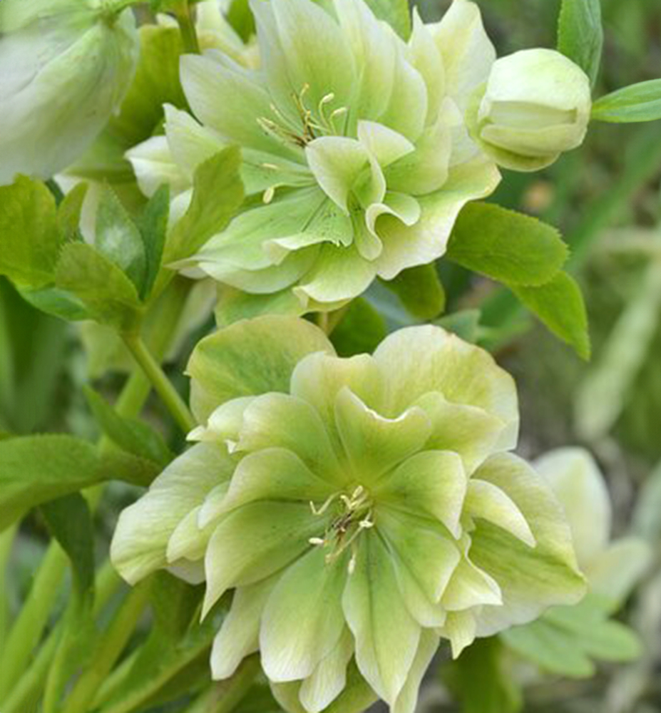 Charakteristika: Čemerica ´DOUBLE ELLEN GREEN®´ je moderne pôsobiaci kultivar, vhodný nielen do tienistých miest v záhrade, ale aj do črepníkových výsadieb. Pôvabne zvlnené žlto-zelené okvetné lístky sú usporiadané vo viacerých radoch, vďaka čomu pôsobia veľmi elegantne. Lupene sú často zvýraznené jemným ružovo-fialovým nádychom, čo dodáva kvetom krásnu hĺbku. Rastie do výšky približne 30 - 40 cm. Čemerice zo série Double Ellen sa vyznačujú atraktívnym poloplným až plným kvetom, ktorý vznikol krížením viacerých odrôd čemeríc. Hoci ide o kvalitné odrody, niekoľkonásobné kríženie môže ojedinele spôsobiť mierne odchýlky vo farbe, čo zároveň robí jednotlivé rastliny neopakovateľnými a jedinečnými.