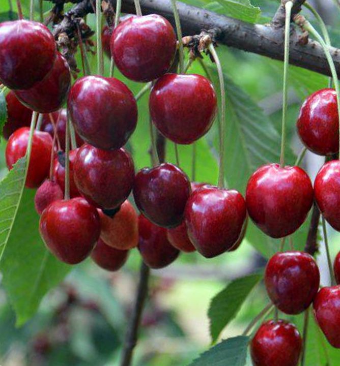 Stredne neskorá, samoopelivá čerešňa so sýtočervenými plodmi srdcovitého tvaru.