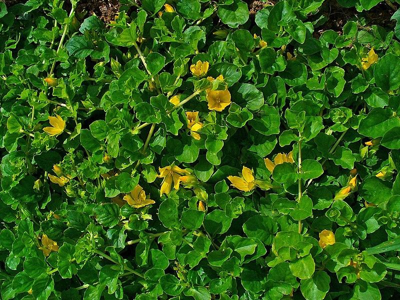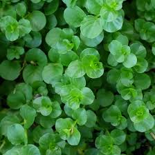 Vlhkomilná pôdopokryvná trvalka s malými okrúhlymi listami zelenej farby.