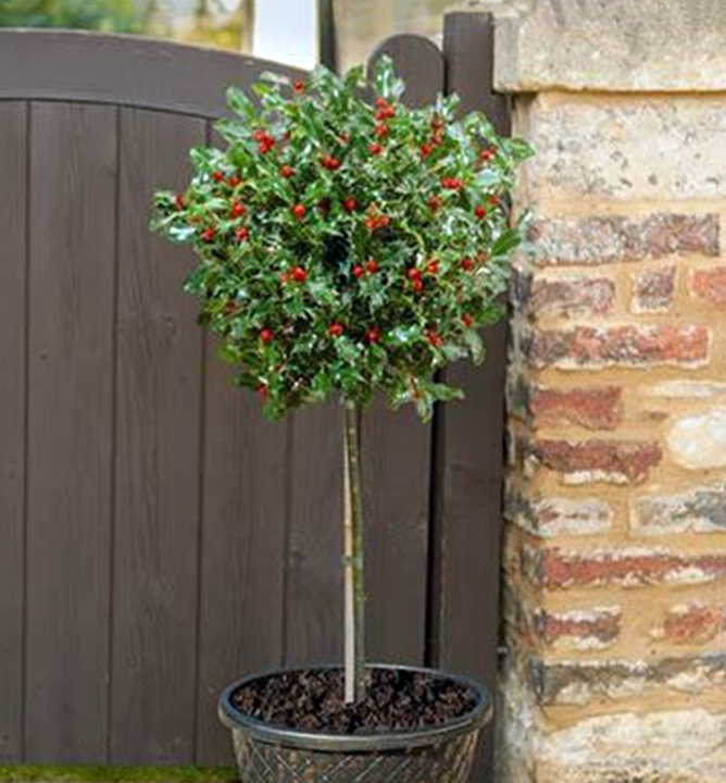 Pomaly rastúci ihličnan na kmienku s guľovitou korunou a tmavozeleným ihličím.