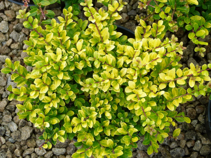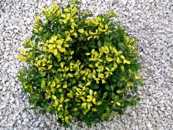 Kompaktný stálezelený nízky ker s atraktívnymi žlto-zelenými listami.