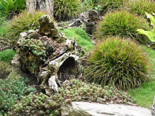 Jedna z najkrajších okrasných tráv s úzkymi, kaskádovitými zeleno-krémovými listami.