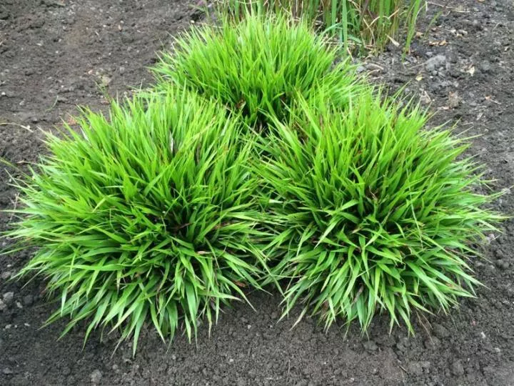 Nižšia okrasná tráva vytvárajúca kompaktný tmavozelený trs.