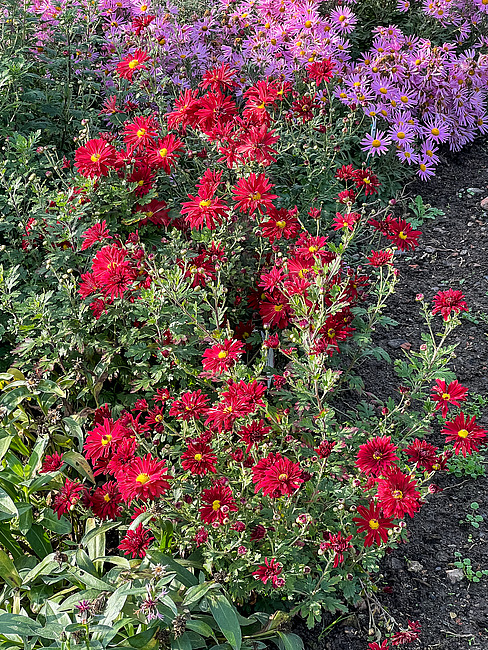 Vysoká jesenná trvalka s neprehliadnuteľnými červenými kvetmi.