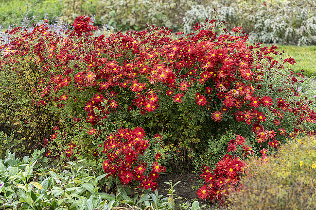Charakteristika: Chryzantéma "Vojvodkyňa z Edinburghu" sa vyznačuje kráľovsky elegantnou červenou farbou. Na pevných olistených stonkách kvitne od začiatku jesene plnými kvetmi. Tento kultivar dorastá do výšky 60-90 cm. Kvety sú mimoriadne obľúbené na jesenné aranžmány a rezané kytice.