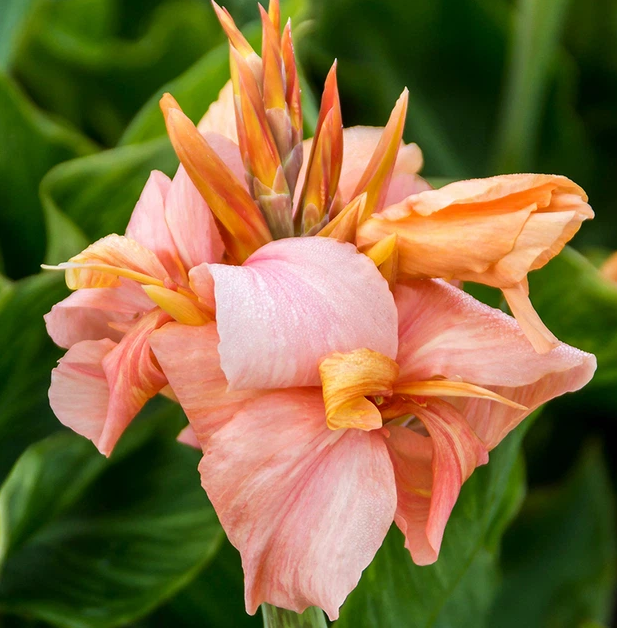 Charakteristika: Kana 'SALMON PINK' vyniká kvetom, ale aj ozdobným listom. Krásne kvety sú veľmi zaujímavej lososovo ružovej až broskyňovej farby. vyrastajú na pevnej stonke spomedzi širokých listov sviežej zelenej farby. Vynikne vysadená vo väčšom črepníku, ale tiež v kombinácii s nižšími trvalkami.