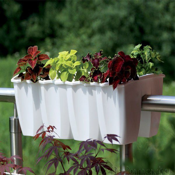 Plastový kvetináč s originálnym vzhľadom v bielej farbe.