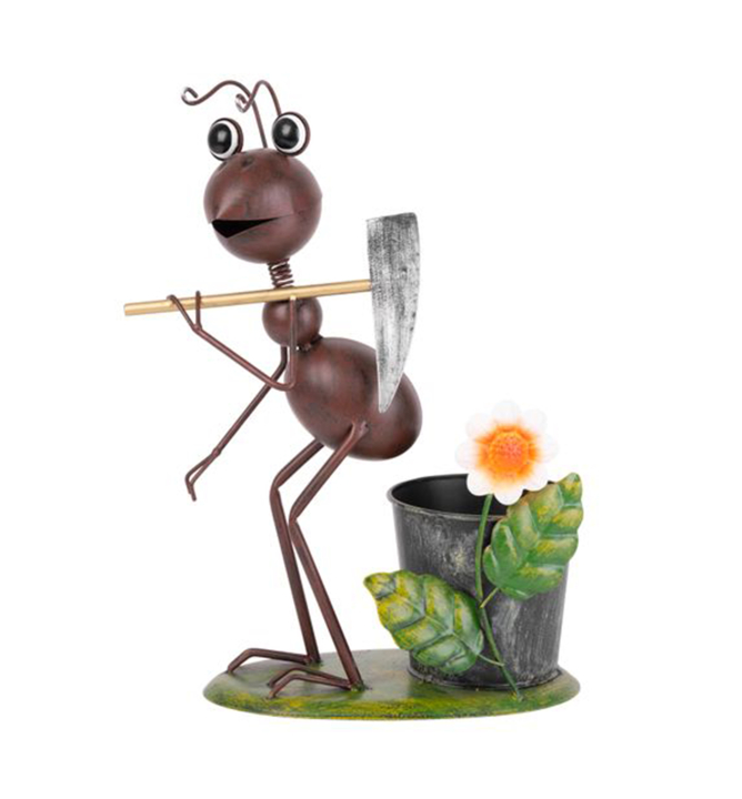 Charakteristika: Záhradný dekoračný Mravec s motykou a s kvetináčom skrášli každý dvor a záhradu. Zasaďte si do neho váš obľúbený kvet. Kvetináč je ideálny na malé rastliny, bylinky alebo dekorácie. Dekoračný mravec je zhotovený z plechu, je stabilný a odolný voči poveternostným podmienkam. Skvele sa hodí ako doplnok do záhonov, na terasu.