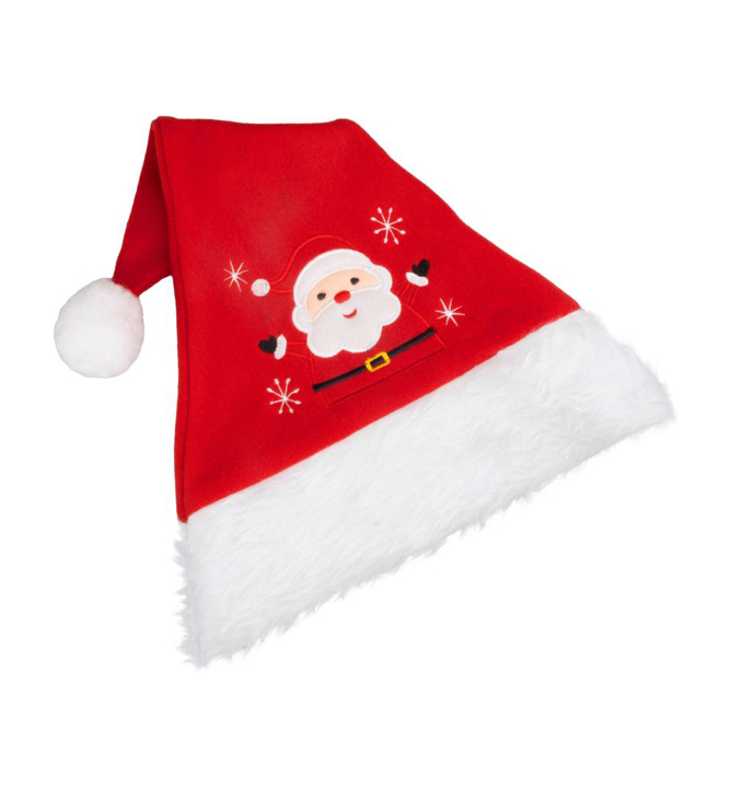 Charakteristika: Vianočná čiapka MagicHome v tradičnej červenej farbe s bielym lemom a brmbolcom je ideálnym doplnkom pre vytvorenie sviatočnej atmosféry. Čiapka je ozdobená veselým motívom Santa Clausa so snehovými vločkami, čo jej dodáva hravý a veselý vzhľad.