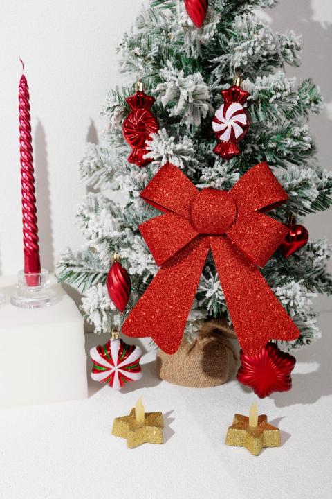 Charakteristika: Vianočná dekorácia mašľa z trblietavého materiálu dotvorí čarokrásnu atmosféru Vianoc vo vašom domove. Je vhodná ako ozdoba na stromček aj ako dekorácia do vianočných aranžmánov a adventných vencov. Farba: červená. Rozmer: 13x21 cm.
