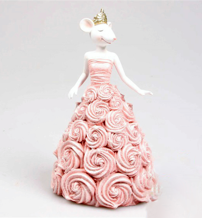 Prekrásna myška v ružových šatách bude zaujímavým doplnkom nielen v záhrade.